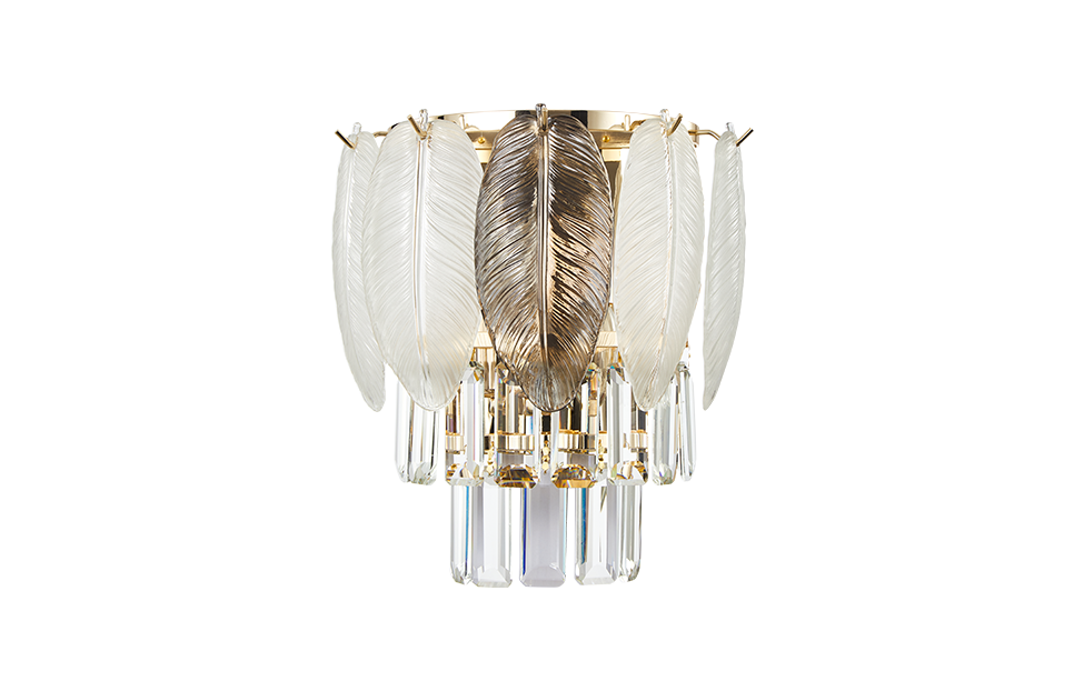 Отображение природных мотивов в предметах интерьера всегда выглядит утонченно и изящно. Это можно сказать и о нашей коллекции Dolor. Каркас коллекции в цвете золота оформлен декоративными лепестками из белого и серого стекла, которые обрамляют хрустальный водопад кристаллов высшего качества прямоугольной формы.